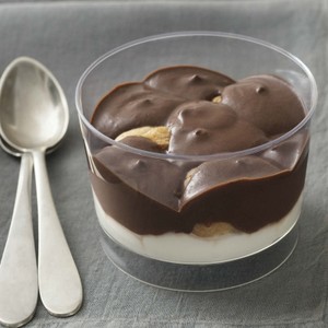 Bignè ripieni di crema al gusto di vaniglia avvolti da gelato semifreddo al cioccolato